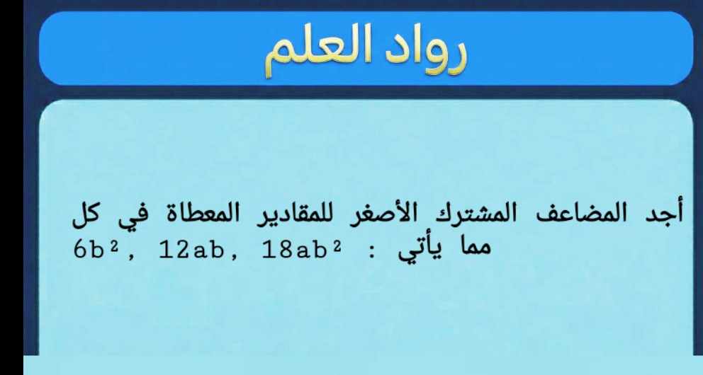 أجد المضاعف المشترك الأصغر للمقادير المعطاة في كل مما يأتي : 6b², 12ab, 18ab²