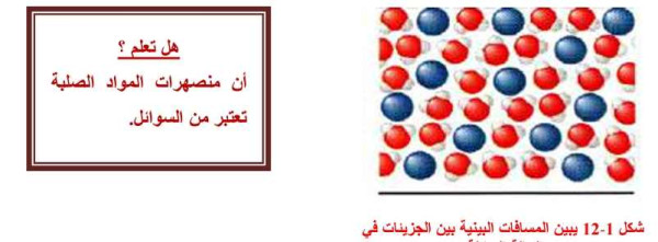 شكل 1-12 ببين المسافات البينية بين الجزيئات في الحالة السائلة.