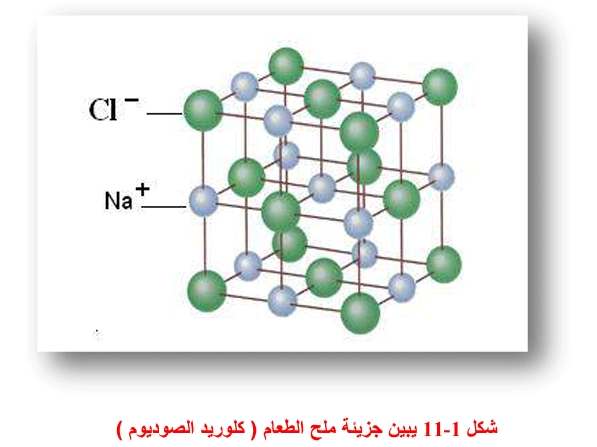 شكل 1-11 يبين جزيئة ملح الطعام ( كلوريد الصوديوم )